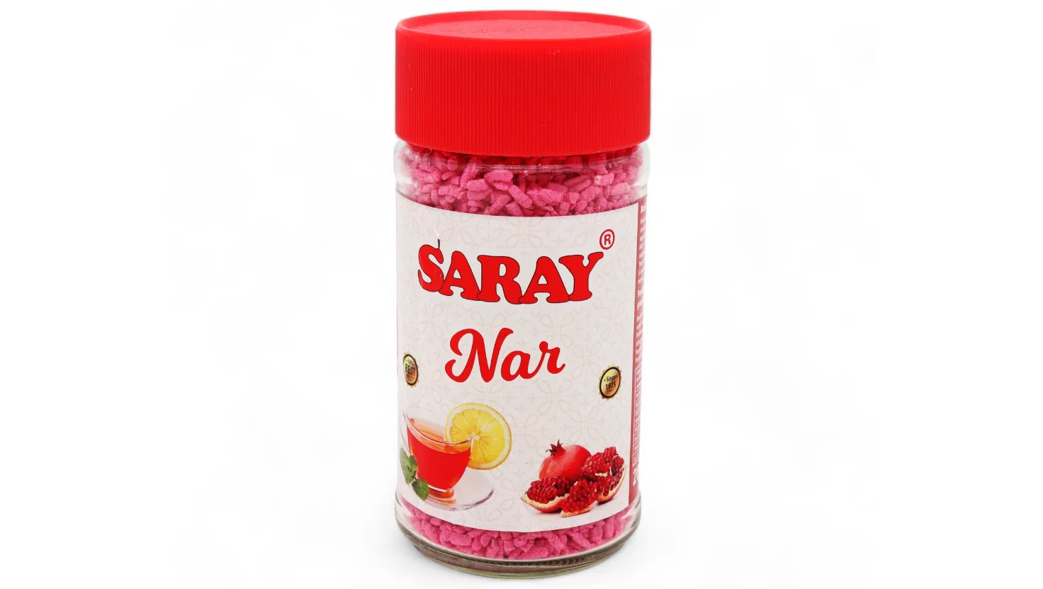 - Zutaten: Saray Granatapfel Instant-Tee, Wasser, Zucker, Gelatine oder ein pflanzliches Geliermittel.